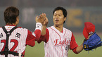 16일 2006 프로야구 플레이오프 한화 이글스와 현대 유니콘스의 3차전 경기가 대전야구장에서 벌어졌다. 8회초 2사 후 정성훈의 강습 타구를 한화 구원투수 문동환이 몸으로 막아낸 뒤 1루에 송구, 아웃을 시킨 다음 쓰러져 고통스러워 하고 있다./대전=손용호 기자spjj@osen.co.kr [Copyright ⓒ 한국 최고의 스포츠 엔터테인먼트...