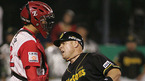 16일 대전 야구장에서 벌어진 2006 프로야구 플레이오프 3차전 한화 이글스와 현대 유니콘스 경기 3회말 1사 후 한화의 데이비스가 중월 대형 솔로 홈런을 날리고 홈인하면서 유지훤 3루코치에게 특유의 거수 경례를 하고 있다./대전=김영민 기자ajyoung@osen.co.kr [Copyright ⓒ 한국 최고의 스포츠 엔터테인먼트 전문 미디어...
