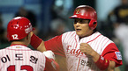 16일 2006 프로야구 플레이오프 한화 이글스와 현대 유니콘스의 3차전 경기가 대전야구장에서 벌어졌다. 한화의 1회말 2사 1,3루서 이범호의 2루타 때 1루주자 김태균까지 홈인, 2-0을 만들고 있다./대전=손용호 기자spjj@osen.co.kr [Copyright ⓒ 한국 최고의 스포츠 엔터테인먼트 전문 미디어...