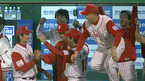 17일 대전 야구장에서 열린 2006 프로야구 플레이오프 4차전 한화 이글스와 현대 유니콘스 경기 4-0 승리를 거두며 한국시리즈에 진출한 한화 이글스 선수들이 환호 하고 있다./대전=김영민 기자ajyoung@osen.co.kr [Copyright ⓒ 한국 최고의 스포츠 엔터테인먼트 전문 미디어 OSEN(www.osen.co.kr) 무단전재 및...