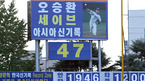 21일 대구 야구장에서 열린 2006 프로야구 한국시리즈 1차전 삼성 라이온즈와 한화 이글스의 경기서 삼성 마운드의 힘에 눌린 한화가 1점도 뽑아내지 못해 삼성이 4-0으로 완승을 거두었다. 삼성의 마무리 오승환이 힘차게 공을 뿌리고 있는 뒤 좌측 외야석에 '아시아 세이브 신기록' 카운트다운을 하던 대형 보드가 그대로 설치돼...