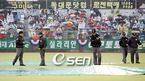 22일 열릴 예정이던 2006 한국시리즈 2차전 삼성 라이온즈와 한화 이글스의 경기가 우천으로 23일로 순연됐다. 심판들이 그라운드 상태를 둘러보고 있다./대구=손용호 기자spjj@osen.co.kr [Copyright ⓒ 한국 최고의 스포츠 엔터테인먼트 전문 미디어 OSEN(www.osen.co.kr) 무단전재 및 재배포 금지]