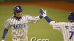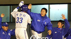 23일 대구 야구장에서 열린 2006 프로야구 한국시리즈 2차전 삼성 라이온즈와 한화 이글스의 경기 3회말 2사 1,2루서 심정수의 좌측 2루타 때 2루주자 박한이가 홈인한 뒤 동료들의 환영을 받고 있다./대구=김영민 기자ajyoung@osen.co.kr [Copyright ⓒ 한국 최고의 스포츠 엔터테인먼트 전문 미디어...
