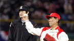 한국시리즈 우승의 중요한 분수령이 될 2006 한국시리즈 3차전 한화 이글스와 삼성 라이온즈의 경기가 25일 대전야구장에서 벌어졌다. 식전행사때 선동렬 감독이 김인식 감독에게 인사를 하고 있다./대전=손용호 기자spjj@osen.co.kr [Copyright ⓒ 한국 최고의 스포츠 엔터테인먼트 전문 미디어 OSEN(www.osen.co.kr)...