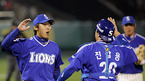 한국시리즈 우승의 중요한 분수령이 될 2006 한국시리즈 3차전 한화 이글스와 삼성 라이온즈의 경기가 25일 대전야구장에서 벌어져 삼성이 연장 12회 선발투수 배영수를 투입하는 강수를 두며 4-3의 극적인 승리를 거두었다. 선동렬 감독이 배영수 권오준과 반갑게 하이파이브를 하고 있다./대전=손용호 기자spjj@osen.co.kr...
