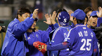 한국시리즈 우승의 중요한 분수령이 될 2006 한국시리즈 3차전 한화 이글스와 삼성 라이온즈의 경기가 25일 대전야구장에서 벌어져 삼성이 연장 12회 선발투수 배영수를 투입하는 강수를 두며 4-3의 극적인 승리를 거두었다. 오승환 양준혁 등 덕아웃에 있던 선수들이 동료들을 반갑게 맞이하고 있다./대전=손용호 기자spjj@osen.co.kr...