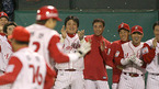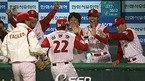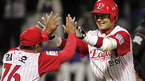25일 대전 야구장에서 열린 2006 프로야구 한국시리즈 3차전 삼성 라이온즈와 한화 이글스의 경기 한화의 8회말 2사 1루서 심광호가 동점 투런 홈런을 날리고 홈인하자 동료들이 환영하기 위해 기다리고 있다./대전=김영민 기자ajyoung@osen.co.kr [Copyright ⓒ 한국 최고의 스포츠 엔터테인먼트 전문 미디어...