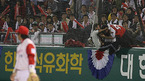 25일 대전 야구장에서 열린 2006 프로야구 한국시리즈 3차전 삼성 라이온즈와 한화 이글스의 경기 도중 흥분한 관중들이 그물망에 기대며 몸싸움을 벌이고 있다./대전=김영민 기자ajyoung@osen.co.kr [Copyright ⓒ 한국 최고의 스포츠 엔터테인먼트 전문 미디어 OSEN(www.osen.co.kr) 무단전재 및 재배포 금지]