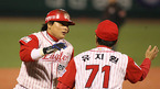 25일 대전 야구장에서 열린 2006 프로야구 한국시리즈 3차전 삼성 라이온즈와 한화 이글스의 경기 한화의 8회말 선두 김태균이 삼성 구원투수 권오준으로부터 좌중월 솔로 홈런을 날리고 유지훤 3루코치의 환영을 받고 있다./대전=김영민 기자ajyoung@osen.co.kr [Copyright ⓒ 한국 최고의 스포츠 엔터테인먼트 전문 미디어...