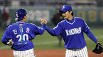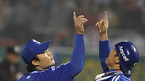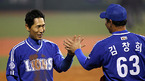 26일 대전야구장에서 벌어진 2006 프로야구 한국시리즈 4차전 경기서 삼성이 이틀 연속 연장 접전을 벌인 끝에 김재걸의 적시타와 배영수 오승환으로 이어지는 계투로 4-2로 승리했다. 양준혁이 결승타를 친 김재걸과 하이파이브를 나누고 있다./대전=손용호 기자spjj@osen.co.kr [Copyright ⓒ 한국 최고의 스포츠 엔터테인먼트 전문...