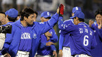 26일 대전야구장에서 벌어진 2006 프로야구 한국시리즈 4차전 경기서 삼성이 이틀 연속 연장 접전을 벌인 끝에 김재걸의 적시타와 배영수 오승환으로 이어지는 계투로 4-2로 승리했다. 10회초를 마치고 덕아웃으로 들어오면서 김재걸이 김창희의 축하를 받고 있다./대전=김영민 기자ajyoung@osen.co.kr [Copyright ⓒ 한국 최고의...