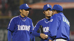 26일 대전야구장에서 벌어진 2006 프로야구 한국시리즈 4차전 경기서 삼성이 이틀 연속 연장 접전을 벌인 끝에 김재걸의 적시타와 배영수 오승환으로 이어지는 계투로 4-2로 승리했다. 10회말 마운드에 오른 오승환이 첫 타자 김민재에게 2루타를 맞자 선동렬 감독이 직접 나와 진정시키고 있다./대전=김영민 기자ajyoung@osen.co.kr...