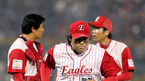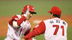 26일 대전 야구장에서 열린 2006 프로야구 한국시리즈 4차전 삼성 라이온즈와 한화 이글스 경기 한화의 4회말 1사 후 한상훈이 역전 우월 솔로 홈런을 날린 뒤 김인식 감독의 환영을 받고 있다./대전=김영민 자ajyoung@osen.co.kr [Copyright ⓒ 한국 최고의 스포츠 엔터테인먼트 전문 미디어 OSEN(www.osen.co.kr)...