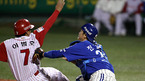 26일 대전 야구장에서 열린 2006 프로야구 한국시리즈 4차전 삼성 라이온즈와 한화 이글스의 경기 한화의 3회말 2사 1루서 조원우 좌익수 플라이 때 1루주자 김민재가 허술한 플레이를 틈타 태그업, 2루서 세이프되고 있다./대전=김영민 기자ajyoung@osen.co.kr [Copyright ⓒ 한국 최고의 스포츠 엔터테인먼트 전문 미디어...