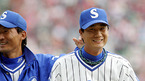 29일 잠실 야구장에서 열린 2006 프로야구 한국시리즈 5차전 삼성 라이온즈와 한화 이글스 경기 8회초 2사 2루서 김태균의 안타성 땅볼 타구를 처리한 삼성 2루수 김재걸을 유격수 박진만이 격려하고 있다./잠실=김영민 기자ajyoung@osen.co.kr [Copyright ⓒ 한국 최고의 스포츠 엔터테인먼트 전문 미디어...