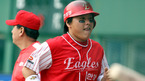 29일 잠실 야구장에서 열린 2006 프로야구 한국시리즈 5차전 삼성 라이온즈와 한화 이글스 경기 7회초 2사 1,3루 대타 조원우의 좌전 빗맞은 안타 때 3루주자 김태균 홈인, 동점 득점을 올린 뒤 동료들로부터 축하를 받고 있다./잠실=김영민 기자ajyoung@osen.co.kr [Copyright ⓒ 한국 최고의 스포츠 엔터테인먼트 전문 미디어...