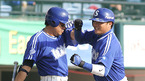 2006 프로야구 한국시리즈 삼성 라이온즈와 한화 이글스의 6차전 경기가 29일 잠실야구장에서 벌어졌다. 1회초 1사 3루서 선제 적시타를 날린 양준혁이 김평호 1루코치와 하이파이브를 나누고 있다./잠실=손용호 기자spjj@osen.co.kr [Copyright ⓒ 한국 최고의 스포츠 엔터테인먼트 전문 미디어 OSEN(www.osen.co.kr)...