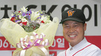 이만수 신임 SK 와이번스 수석코치가 30일 문학구장 내 구단 회의실에서 입단식을 가졌다. 이만수 코치가 팬으로부터 받은 꽃다발을 들고 활짝 웃고 있다./인천=손용호 기자spjj@osen.co.kr [Copyright ⓒ 한국 최고의 스포츠 엔터테인먼트 전문 미디어 OSEN(www.osen.co.kr) 무단전재 및 재배포 금지]