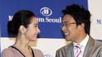 5일 밀레니엄 힐튼호텔에서 탤런트 이민영과 이찬의 결혼발표 기자회견이 열렸다. 둘은 12월 10일 이 호텔에서 결혼식을 올린다. 취재진이 키스신을 요청하자 이찬이 ' 그건 좀 곤란한데요' 하고 얘기한 후 마주보고 웃고 있다. 둘은 가볍게 이찬이 이민영의 볼에 키스를 하는걸로 대신했다./손용호 기자spjj@osen.co.kr...