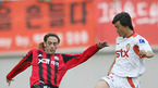 5일 서울 상암 월드컵 경기장에서 벌어진 삼성 하우젠 K리그 FC 서울과 경남 FC의 경기서 서울의 최재수가 경남의 산토스에게 차이고 있다./상암=김영민 기자ajyoung@osen.co.kr [Copyright ⓒ 한국 최고의 스포츠 엔터테인먼트 전문 미디어 OSEN(www.osen.co.kr) 무단전재 및 재배포 금지]