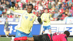 11일 성남 탄천 종합운동장서 벌어진 '삼성 하우젠 K-리그 2006' 플레이오프 성남 일화와 FC 서울의 경기서 성남이 전반 모따의 결승골로 1-0으로 승리, 챔피언 결정전에 선착했다. 후반 페널티 박스를 벗어나 볼이 골라인 아웃되기를 기다리던 서울 골키퍼 김병지가 성남 이따마르에게 공을 뺏겨 고전하고 있다./성남=손용호...