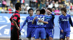 12일 수원 월드컵구장에서 벌어진 '삼성 하우젠 K-리그 2006' 플레이오프 수원 삼성과 포항 스틸러스의 경기서 후반 백지훈의 결승골로 수원이 1-0으로 승리, 챔피언결정전에 올랐다. 승리의 기쁨을 나누는 수원 선수들 옆을 포항의 이동국이 걸어가고 있다./수원=손용호 기자spjj@osen.co.kr [Copyright ⓒ 한국...