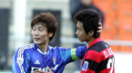 12일 수원 월드컵구장에서 벌어진 '삼성 하우젠 K-리그 2006' 플레이오프 수원 삼성과 포항 스틸러스의 경기서 후반 백지훈의 결승골로 수원이 1-0으로 승리, 챔피언결정전에 올랐다. 수원의 송종국이 포항의 이동국의 축하를 받은 뒤 위로해 주고 있다./수원=손용호 기자spjj@osen.co.kr [Copyright ⓒ 한국 최고의...