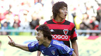 '삼성 하우젠 K-리그 2006' 플레이오프 수원 삼성과 포항 스틸러스의 경기가 12일 수원 월드컵경기장에서 벌어졌다. 전반전 포항의 오범석이 수원 김대의와 공중볼을 다투고 있다./수원=손용호 기자spjj@osen.co.kr [Copyright ⓒ 한국 최고의 스포츠 엔터테인먼트 전문 미디어 OSEN(www.osen.co.kr)...
