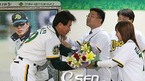 현대 유니콘스 제2대 선장으로 선임된 김시진(48) 감독이 13일 수원구장 회의실에서 취임식을 가졌다.김시진 감독은“정직한 땀으로 ‘찰거머리 야구’를 보여주겠다”며 자신의 감독으로서 야구관을 밝혔다. 김시진 감독이 취임식 후 팬으로부터 꽃다발과 대형 퍼즐 액자를 받고 있다./수원=손용호 기자spjj@osen.co.kr [Copyright ⓒ 한국...