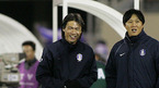 국가대표팀 홍명보 코치가 올림픽대표팀의 감독을 맡아 14일 창원 종합운동장에서 일본 올림픽대표팀을 맞아 치른 평가전은 전반 박주영의 선제골로 앞서 나가다 후반 안태은의 동점 자책골로 아쉬운 1-1 무승부를 기록했다. 후반 몇차례의 결정적인 슈팅이 골포스트를 맞거나 골키퍼 정면으로 가자 홍명보 감독이 웃고 있다./창원=손용호...