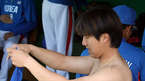 15일 도하 아시안게임에 나갈 국가대표 야구팀이 부산 사직구장에서 사흘째 훈련을 가졌다. 장성호가 땀에 젖은 유니폼을 갈아 입고 있다./부산=손용호 기자spjj@osen.co.kr [Copyright ⓒ 한국 최고의 스포츠 엔터테인먼트 전문 미디어 OSEN(www.osen.co.kr) 무단전재 및 재배포 금지]