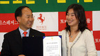 LPGA에서 활약 중인 프로골퍼 안시현이 18일 서울 임피리얼 팰리스호텔에서 토비스 레저그룹과 광고모델 조인식을 가졌다. 안시현이 이교정 회장과 협약서에 사인을 한 후 밝게 웃고 있다./손용호 기자spjj@osen.co.kr [Copyright ⓒ 한국 최고의 스포츠 엔터테인먼트 전문 미디어 OSEN(www.osen.co.kr) 무단전재 및...