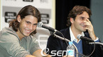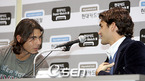 21일 잠실체육관에서 열리는 '현대카드 슈퍼매치III'경기를 가지기 위해 방한한 남자 테니스 세계랭킹 1, 2위 로저 페더러와 라파엘 나달이 20일 여의도 현대카드 본사에서 환영식 및 입국 기자회견을 가졌다. 나달(왼쪽)이 자신의 경기 중 습관에 대해 얘기한 후 쑥스러운듯 웃고 있다./손용호 기자spjj@osen.co.kr...