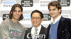 21일 잠실체육관에서 열리는 '현대카드 슈퍼매치3' 경기를 가지기 위해 방한한 남자 테니스 세계랭킹 1, 2위 로저 페더러와 라파엘 나달이 20일 여의도 현대카드 본사에서 환영식 및 입국 기자회견을 가졌다. 나달(왼쪽)과 페더러가 현대카드 정태영 사장과 함께 선전을 다짐하며 기념촬영을 하고 있다./손용호 기자spjj@osen.co.kr...