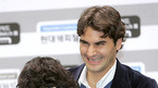 21일 잠실체육관에서 열리는 '현대카드 슈퍼매치3' 경기를 위해 방한한 남자 테니스 세계랭킹 1, 2위 로저 페더러와 라파엘 나달이 20일 여의도 현대카드 본사에서 환영식 및 입국 기자회견을 가졌다. 페더러가 자신의 사인이 적힌 라켓을 선물로 받을 사람의 명함을 뽑고 있다./손용호 기자spjj@osen.co.kr [Copyright...