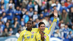25일 수원월드컵경기장에서 열린 '삼성하우젠 K리그 2006' 챔피언결정전 2차전 수원 삼성과 성남 일화의 경기 후반전 모따가 두 번째 골을 넣고 환호하자 김두현이 뒤를 따르고 있다./수원=손용호 기자spjj@osen.co.kr [Copyright ⓒ 한국 최고의 스포츠 엔터테인먼트 전문 미디어 OSEN(www.osen.co.kr)...