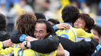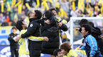 프로축구 '삼성하우젠 K리그 2006'의 우승컵은 성남 일화의 품에 안겼다. 25일 수원 월드컵경기장에서 벌어진 챔피언 결정전 2차전서 성남이 2-1로 승리, 종합 전적 3-1로 챔피언에 등극했다. 후반 주심의 경기 종료 휘슬이 울리자 김학범 감독이 선수들을 부둥켜 안고 우승의 기쁨을 나누고 있다./수원=손용호...