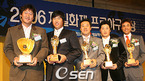 13일 일간스포츠가 주최하고 제일화재가 후원하는 '2006 제일화재 프로야구대상' 시상식이 프라자 호텔에서 열렸다. 대상을 받은 롯데 이대호와 최고투수상을 받은 한화 류현진, 최고수비 삼성 박진만, 최고구원투수 오승환, 특별상 한화 송진우가 취재진을 위해 포즈를 취하고 있다./손용호 기자spjj@osen.co.kr [Copyright...