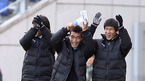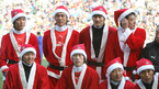 ‘홍명보 장학재단과 함께하는 2006 PUMA 자선축구경기'가 크리스마스인 25일 수원 월드컵구장에서 열렸다. 이날 행사에는 축구 선수뿐만 아니라 유도 스타 이원희와 테니스 스타 이형택이 참가, 경기를 빛냈다.경기에 앞서 선수들이 산타 복장으로 입장하고 있다./수원=김영민 기자ajyoung@osen.co.kr [Copyright ⓒ 한국...