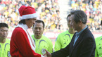 ‘홍명보 장학재단과 함께 하는 2006 PUMA 자선축구경기'가 크리스마스인 25일 수원 월드컵구장에서 열렸다. 이날 행사에는 축구 선수뿐만 아니라 유도 스타 이원희와 테니스 스타 이형택이 참가, 경기를 빛냈다.경기에 앞서 유도 스타 이원희가 정몽준 대한축구협회장과 인사를 나누고 있다./수원=김영민 기자ajyoung@osen.co.kr...