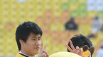 ‘홍명보 장학재단과 함께 하는 2006 PUMA 자선축구경기'가 크리스마스인 25일 수원 월드컵구장에서 열렸다. 이날 행사에는 축구 선수뿐만 아니라 유도 스타 이원희와 테니스 스타 이형택이 참가, 경기를 빛냈다. 김진용이 골을 넣은 뒤 터치라인 밖에서 대기하고 있던 유도 스타 이원희를 들어 메치고 있다./수원=손용호...