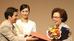네티즌이 선정하고 직접 시상하는 '제4회 최고의 영화상' 시상식이 7일 중앙대 아트 센터에서 열렸다. <열혈남아>로 최고의 여자 조연 배우상을 수상한 나문희가 네티즌으로 부터 꽃다발을 받고 활짝 웃고 있다./손용호 기자spjj@osen.co.kr [Copyright ⓒ 한국 최고의 스포츠 엔터테인먼트 전문 미디어...