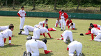 일본 오키나와의 구시카와에서 전지훈련 중인 SK 선수들이 지난 17일 그라운드에 엎드려 스트레칭하고 있는 모습이 마치 설날을 맞아 가운데 서 있는 이광길 코치에게 세배하는 것처럼 보인다./SK 와이번스 제공. [Copyright ⓒ 한국 최고의 스포츠 엔터테인먼트 전문 미디어 OSEN(www.osen.co.kr) 무단전재 및 재배포 금지]