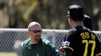23일 플로리다에서 스프링 캠프 중인 현대 유니콘스 외국인 투수 캘러웨이가 훈련을 지켜보고 있는 김시진 감독에게 엄살을 부리고 있다. 김 감독은 딴청을 하며 들은 척도 하지 않고 있다. /브래든턴=주지영 기자 jj0jj0@osen.co.kr [Copyright ⓒ 한국 최고의 스포츠 엔터테인먼트 전문 미디어 OSEN(www.osen.co.kr)...