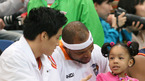 2006-2007 현대모비스 프로농구 올스타 경기가 1일 울산 동천체육관에서 벌어졌다. 우지원이 단테 존스의 딸에게 악수를 청하고 있다./울산=손용호 기자spjj@osen.co.kr [Copyright ⓒ 한국 최고의 스포츠 엔터테인먼트 전문 미디어 OSEN(www.osen.co.kr) 무단전재 및 재배포 금지]