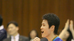 힐스테이트배 2006-2007 V-리그 올스타게임이 1일 올림픽제2체육관에서 열렸다. 남자부 1세트 종료 후 매직 리베로 컨테스트에서 우승한 한국전력의 강성민이 환호하고 있다./올림픽공원=김영민 기자 [Copyright ⓒ 한국 최고의 스포츠 엔터테인먼트 전문 미디어 OSEN(www.osen.co.kr) 무단전재 및 재배포 금지]