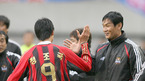 삼성 하우젠 K리그 2007 FC 서울과 대구 FC의 경기가 4일 오후 상암 월드컵경기장에서 열렸다. 후반 교체 투입되어 팀의 두 번째 골을 성공시킨 서울의 정조국이 최용수 코치의 격려를 받고 있다./상암=김영민 기자ajyoung@osen.co.kr [Copyright ⓒ 한국 최고의 스포츠 엔터테인먼트 전문 미디어...