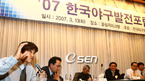 한국야구위원회 주최 '2007 한국야구 발전 포럼'이 13일 서울 올림픽파크텔에서 열렸다. 마케팅 역량 강화 분임토론에서 두산의 홍성흔이 "구단과 선수는 언론 및 미디어을 통하여 홍보에 많은 중점을 둬야 한다"고 발표하고 있다./김영민 기자ajyoung@osen.co.kr [Copyright ⓒ 한국 최고의 스포츠...