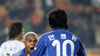 '2007 삼성하우젠컵' 수원 삼성과 대전 시티즌 경기가 14일 오후 수원 월드컵구장에서 열렸다. 후반 수원의 안정환이 해트트릭을 완성하자 어시스트해 준 나드손이 달려와 축하하고 있다./수원=김영민 기자ajyoung@osen.co.kr [Copyright ⓒ 한국 최고의 스포츠 엔터테인먼트 전문 미디어...