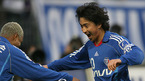 2007 삼성하우젠 K-리그 수원 삼성과 부산 아이파크의 경기가 17일 수원 월드컵경기장에서 벌어졌다. 후반 나드손이 프리킥을 선제골로 연결시키자 안정환이 마치 자기가 넣은 것처럼 좋아하며 달려오고 있다./수원=손용호 기자spjj@osen.co.kr [Copyright ⓒ 한국 최고의 스포츠 엔터테인먼트 전문 미디어...